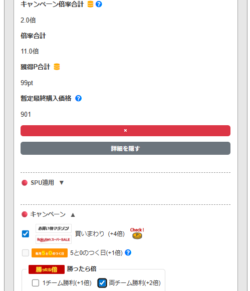 今回は、実際の買いまわりキャンペーン期間中に「楽天ポイントシミュレーター」を使って計算を行い、その正確性を検証してみました。