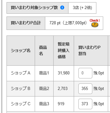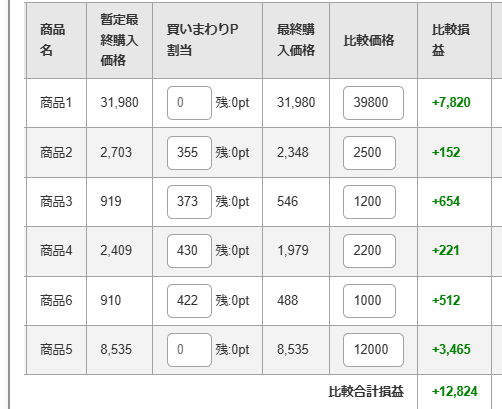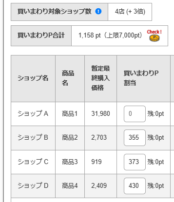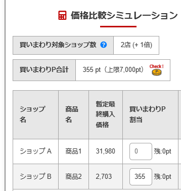 買いまわりポイントを特定の商品に割り振って、Amazonなど他のECサイトと実質価格を比較することも可能です。