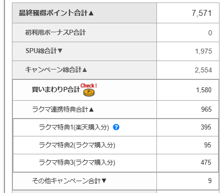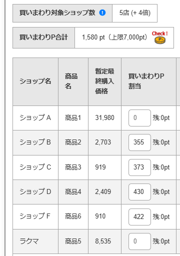 そのため、シミュレーター上の買いまわりポイント欄は「0」になります。 ※「ラクマ特典獲得P合計」は、すべての買い物が終わった時に確定する仕組みです。