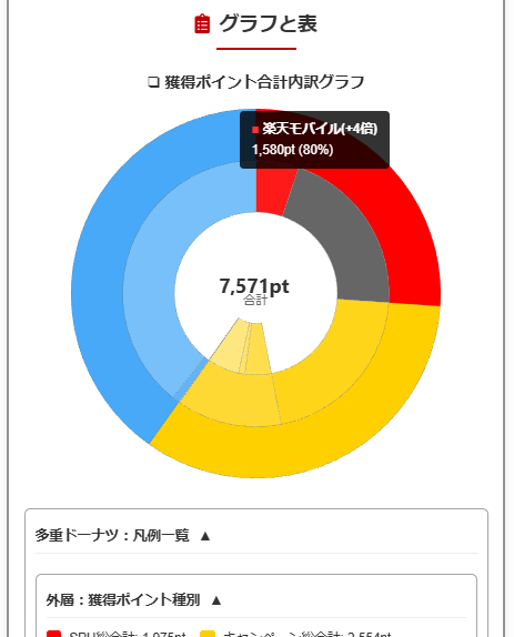 入力したデータから、ポイントの内訳などが自動でグラフ化されます。