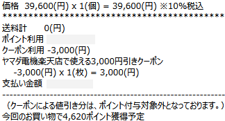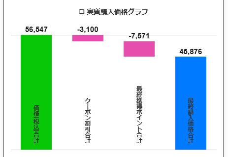 クーポン割引と獲得ポイントを引いた「実質価格」がウォーターフォールグラフで表示されます。