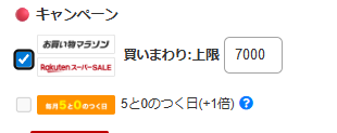 続いて、キャンペーン設定で「買いまわり」にチェックを入れます。 今回の回は上限が7,000ポイントでしたので、そのように設定します。