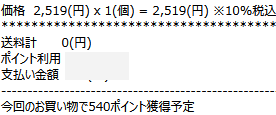 - 実際の獲得ポイント: 540pt